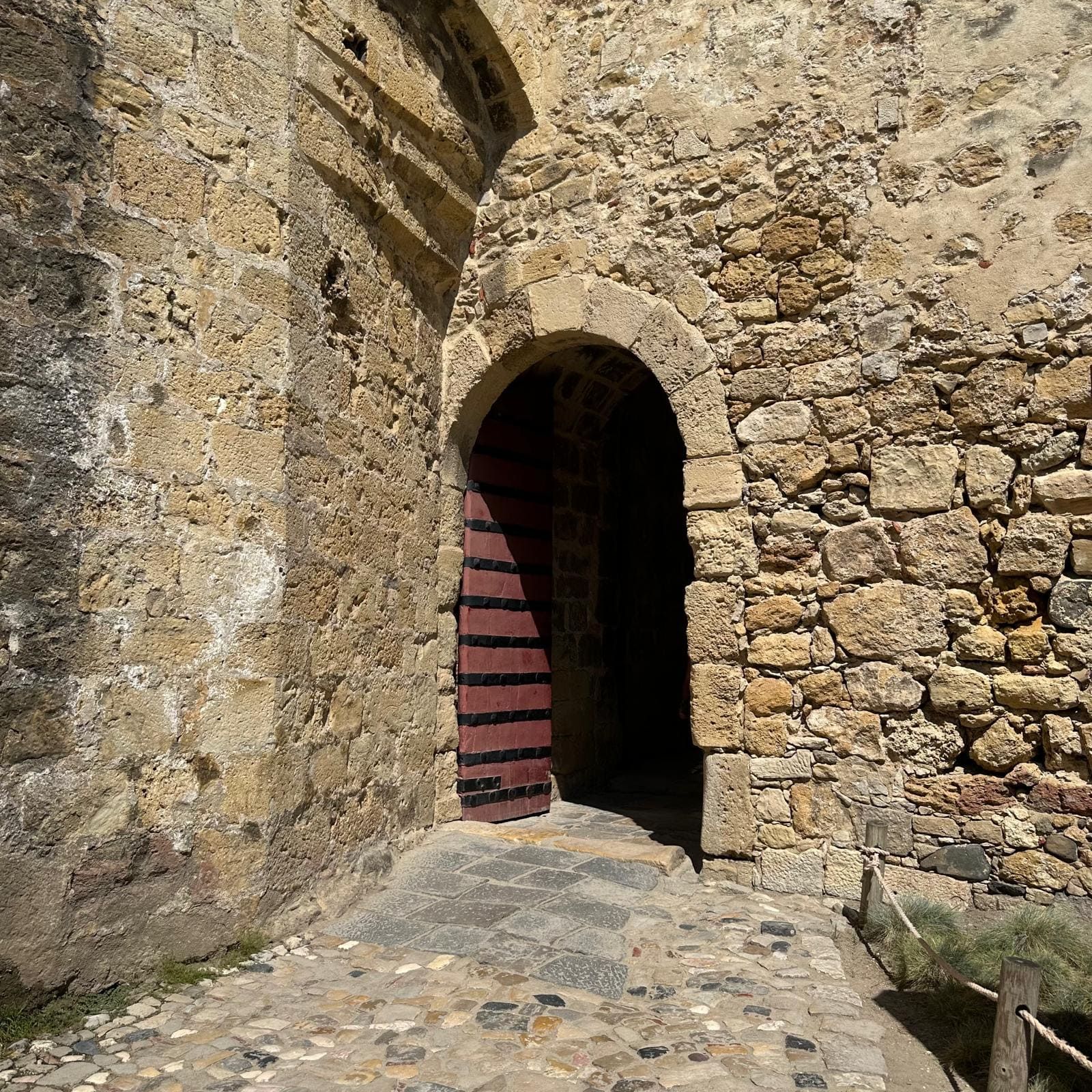 L’entrée du château se trouvait devant nous. Au Moyen Âge, il y avait un pont-levis qui, en temps de guerre, pouvait être levé, empêchant ainsi le passage.
