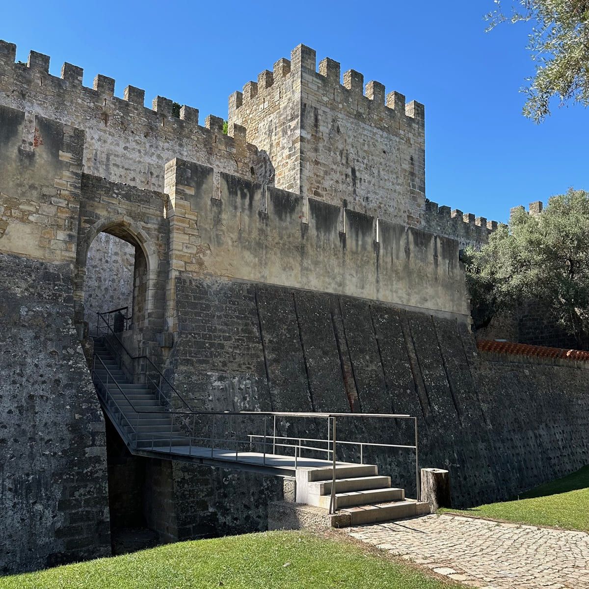 Le Château de St George fonctionne différemment. Nous n’allons pas voir les magnifiques entrées des châteaux Vale do Loire, ni les salles gigantesques des châteaux allemands. Le château que nous allons visiter n’était qu’une structure défensive, n’ayant jamais été la résidence de quelqu’un. Cependant, il est possible qu’il y ait eu un espace de travail pour le gouverneur, tout comme la tour située devant le château a servi d’archives royales au Moyen Âge, la “Torre do Tombo”. Le Château de St George n’a jamais eu de fonction palatiale et n’était occupé qu’en cas de danger imminent. C’est pourquoi il n’y a pas lieu de s’inquiéter d’une entrée tape-à-l’œil et facile à repérer. Au contraire, au Château de St George, l’entrée est cachée et discrète.