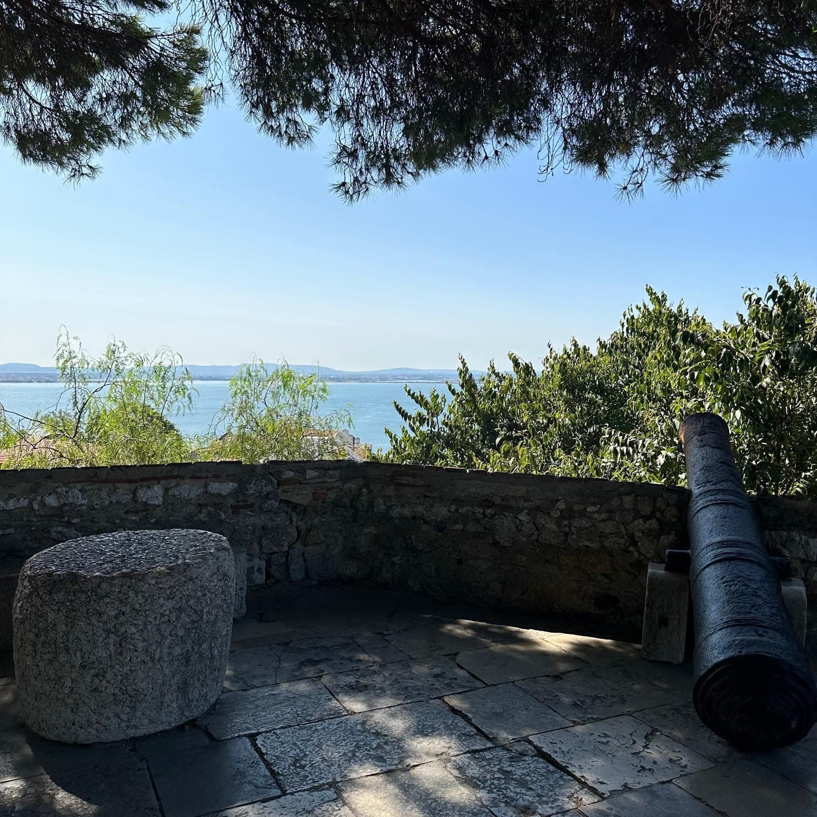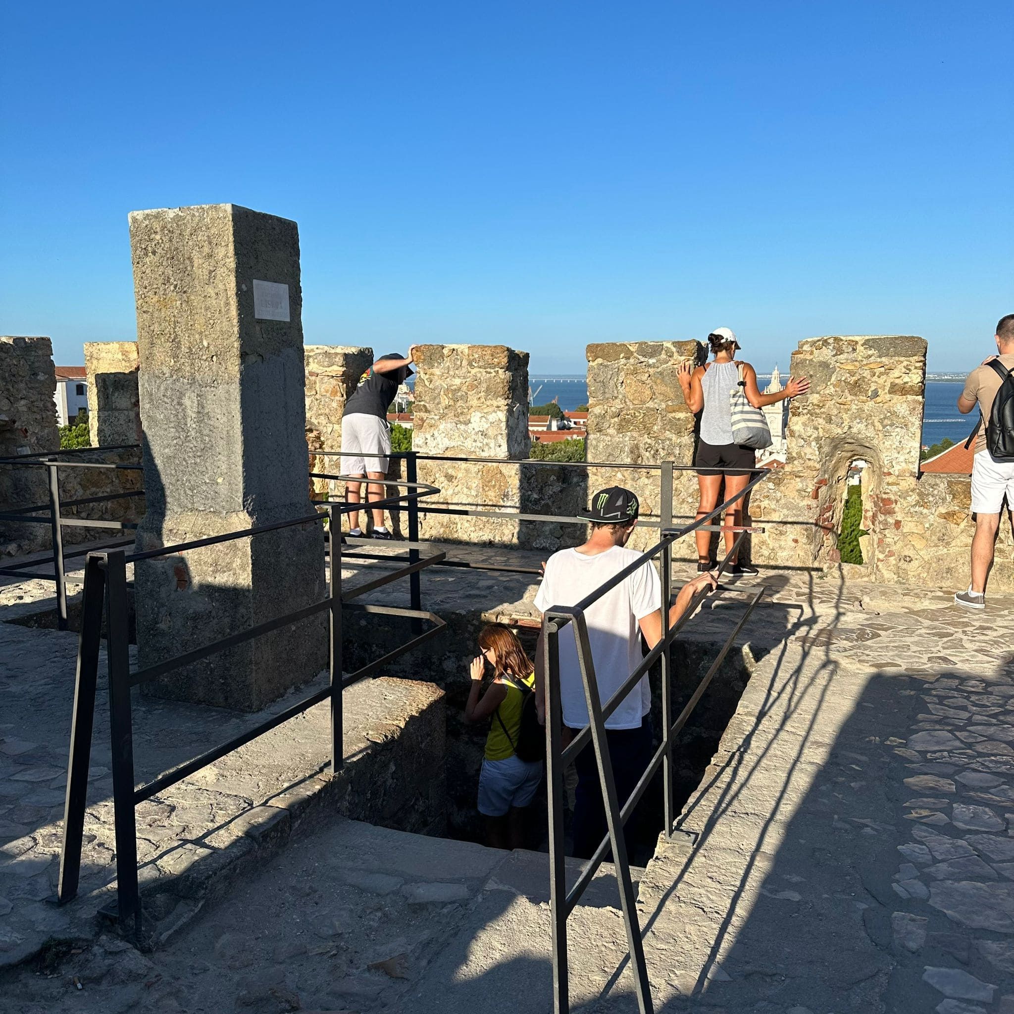 Quand ils arrivent au sommet, ils cherchent le drapeau et ne le trouvent pas! Non, ils n’ont pas été trompés. Aujourd’hui, il est ailleurs, mais au Moyen Âge, Lisbonne se trouvait juste au sud de la colline, et le drapeau aurait donc pu se trouver ici, car sur cette tour, il aurait été parfaitement visible. Aujourd’hui, la capitale s’est tellement développée que les drapeaux du Portugal et de Lisbonne ont été placés du côté ouest, au-dessus de la grande zone riveraine et de la partie historique de la ville.